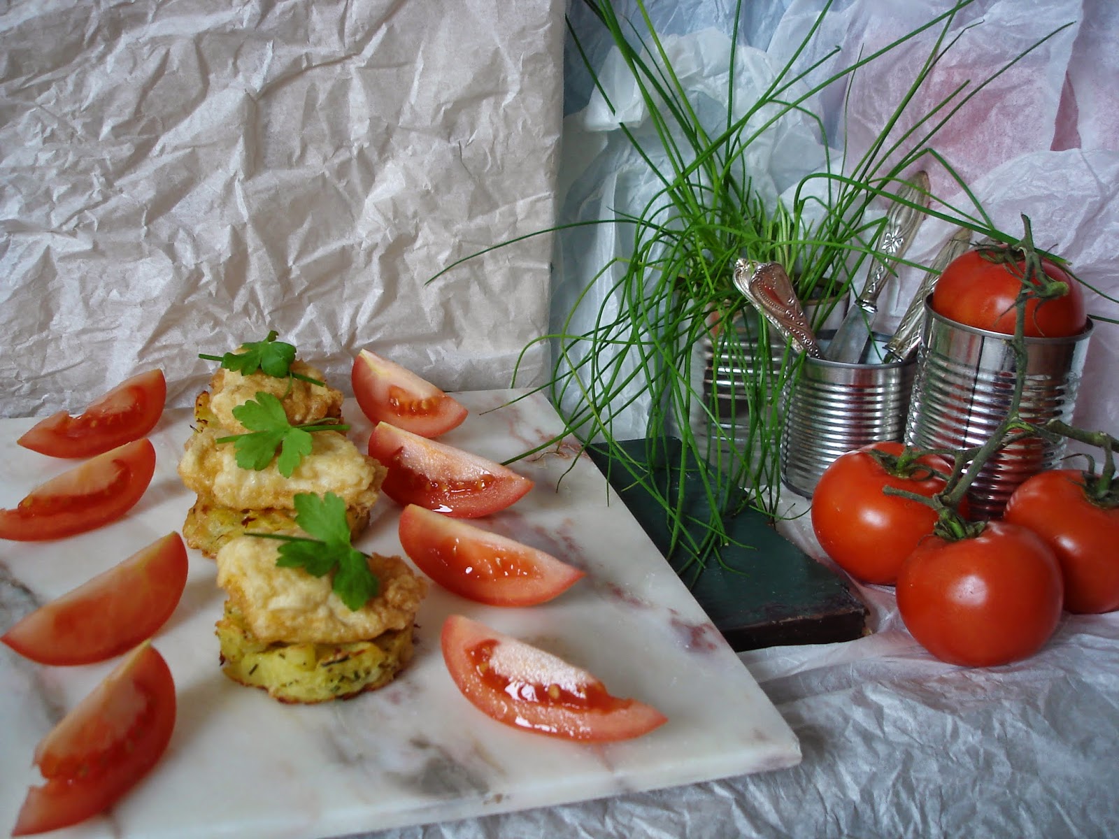 tirar a pele as batatas e rale num ralador grosso ,juntar o queijo ralado o cebolinho picado ,temperar com sal e pimenta preta moída ,envolva tudo .Num tabuleiro de ir ao forno forre com papel vegetal ,coloque pequenas porções do preparado dentro dos aros para enformar ,retire os aros e leve ao forno a 200 cº durante 30 m.